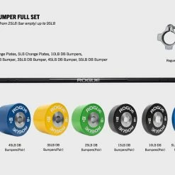 - Full Set – Allows for 5LB increments from 25LB (bar empty) up to 95LB + 115LB +135LB weights