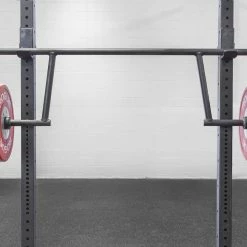 It’s rackable so athletes can train with any of our power racks, squat stands or Rigs. The bar is farther in front of the midline, placing the emphasis on the hamstrings and the lower back. It allows the upper body to stay vertical, training proper form to get max depth and explosiveness through a full range of motion. This means that you can get stronger, fast, while better preparing your body for safe, effective training under any type of bar.