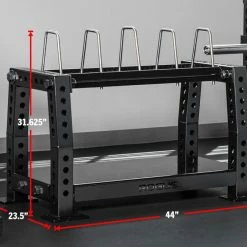 The Monster Bumper Rack is a compact, customizable equipment storage unit, made in the USA from the same 3×3” 11-gauge steel as our Monster Power Racks and Rigs. The patent-pending, 180 LB design includes an adjustable top rail and dividers for plates, with a flat, reinforced bottom shelf (40.5” wide x 20” deep) for other assorted gear.*