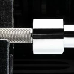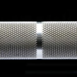 At a length of 94.49”, the Squat Bar is considerably longer than a standard Oly bar (our Ohio Bar is 86.75”), with 56” between the sleeves and a loadable sleeve length of 16.795” (vs. 16.4” on the Ohio Bar). The 32mm diameter stainless steel shaft has a tensile strength of 200,000 PSI, and the knurling runs across its entire length, with clearcut powerlifting marks and a center mark included. The aggressive knurl pattern ensures a firm grip without being sharp or abrasive.