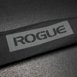 Each Rogue Barbell Carry Bag includes a secure, hook and D-ring closure on one end, and a hook-and-loop section for adding custom patches on the opposite end. The center of the bag features a laser-cut Cordura Rogue label; black text on grey panel.