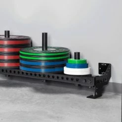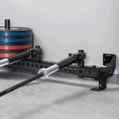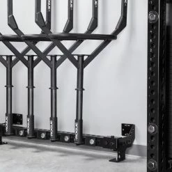 Rogue initially developed this patent-pending accessory for use in the training facility of the NHL’s Columbus Blue Jackets, and it’s now been refined for almost any type of gym layout, with mounting points spaced at 48” to fit on standard 16”-on-center wall studs. The space efficient Heavy Rail extends just 11” from the wall (11.75” with optional stringers) and measures 7-⅛” in height (from the floor to the top of the steel tube).
