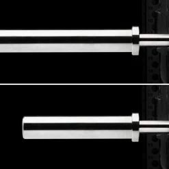- 9” of Loadable Sleeve Space – 44 LB unloaded bar weight (frame + sleeves + 2 handles). Available with stainless steel or proprietary matte black finish.