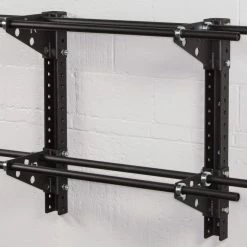 Set-Up: Simply space and install two Rogue Strips® at your desired shelf length, then connect each bracket to The Strip® using the provided 0.625″ hardware. To complete the shelves, customers can opt to have a pair of 52″ long pipes included in their order, or—if you prefer a custom-length—you can purchase any length of 1″ Schedule 40 pipe at your local hardware store and run them through the brackets.