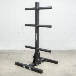 Compatible with any and all IWF standard Olympic plates, the Vertical Plate Tree 2.0 is equipped with six 12” long storage posts (three on each side) constructed from 1.5” Schedule 40 pipe. Each of the posts on the roughly four-foot tall tree are evenly spaced at 18.275″ on center to offer a good mix of versatility and storage capacity.