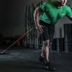 Stop using cables and chains that get frayed and have sharp edges to cut you with, and start using the Spud Inc sled strap. One end is fitted with a large shackle that will fit most any sled and the other end has a 4″ wide delta ring that will slide over a standard power belt. The sled strap is great for using with our lower body and upper body sled straps.