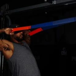 The patent pending design uses Sling Shot material that stretches, allowing a greater range of motion compared to standard attachments. The stretch of the material creates a banded feeling for a greater “pump” as you can get deeper in the movements, promoting greater muscle contraction and better core stabilization.